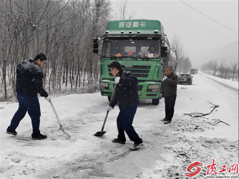 同時(shí),大秦公司積極與交通、路政等部門取得聯(lián)系,在說明情況后,爭取了政府相關(guān)部門支持,項(xiàng)目各部門職工頂風(fēng)雪、冒嚴(yán)寒進(jìn)行道路鏟雪、撒鹽等行動(dòng)。經(jīng)過幾個(gè)小時(shí)不間斷作業(yè),雪卻越下越大,無法滿足正常通行條件,車輛依然不具備通行條件,被滯留原地。公司與電廠積極溝通,協(xié)調(diào)搶險(xiǎn)物資供應(yīng),支援力量為恢復(fù)通行、供暖保電提供了有力支撐。在全體職工連續(xù)30多個(gè)小時(shí)撒鹽、鏟雪等行動(dòng)的奮戰(zhàn)下,道路恢復(fù)了通行,載滿100噸石灰石的物資供應(yīng)車到達(dá)電廠,后續(xù)7輛物資供應(yīng)車也陸續(xù)抵達(dá)項(xiàng)目現(xiàn)場(chǎng),保障了物資正常供應(yīng),平穩(wěn)度過了險(xiǎn)情。