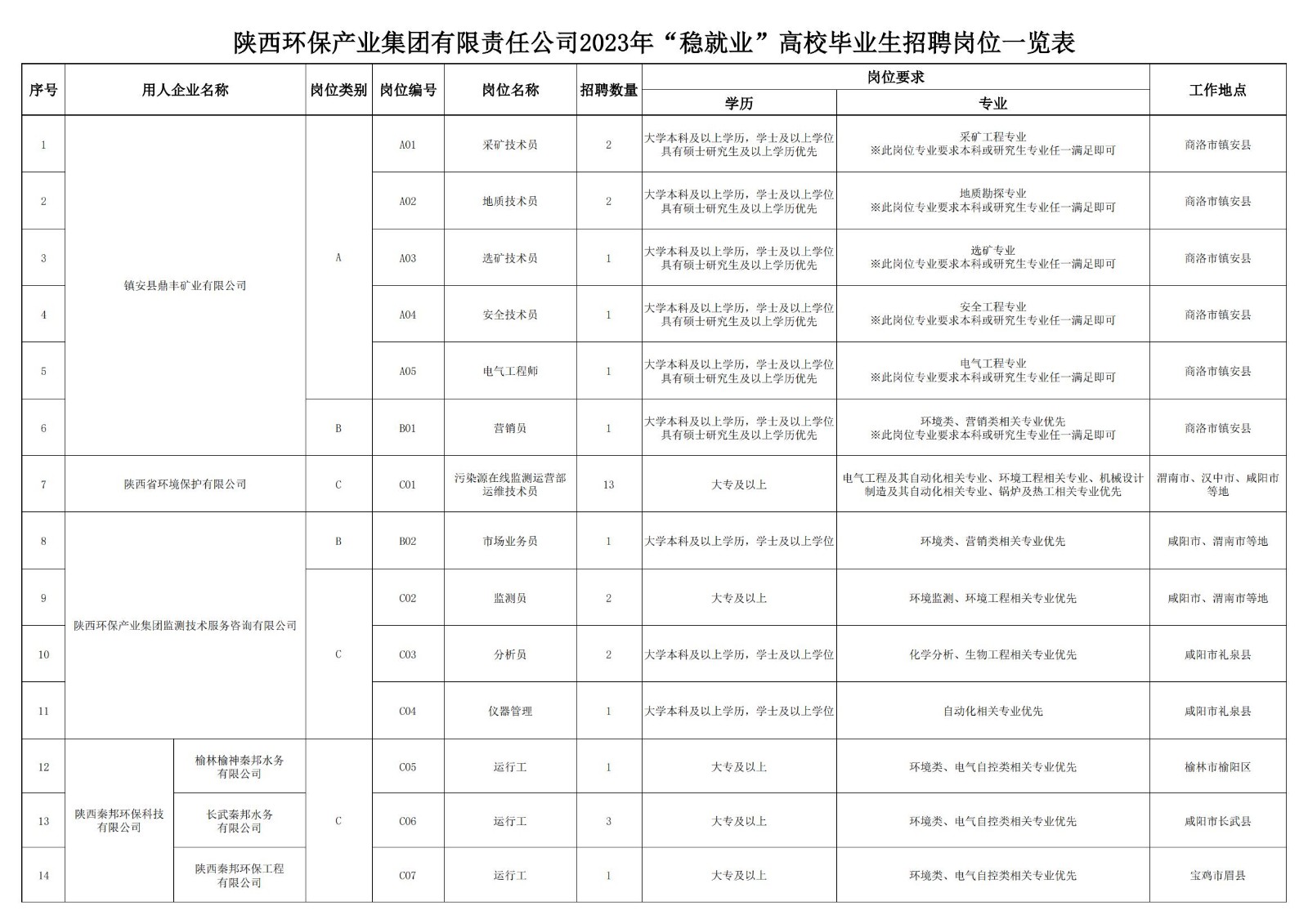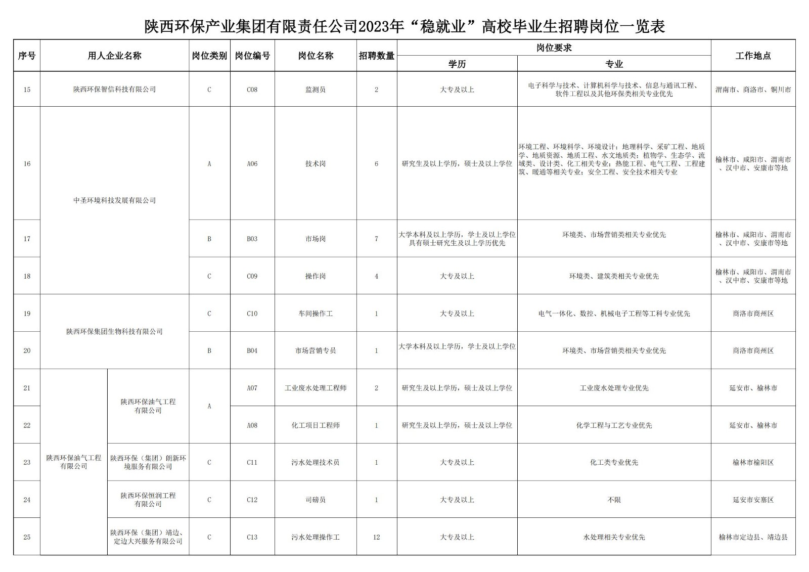 陜西環(huán)保產(chǎn)業(yè)集團(tuán)有限責(zé)任公司2023年“穩(wěn)就業(yè)”高校畢業(yè)生招聘公告